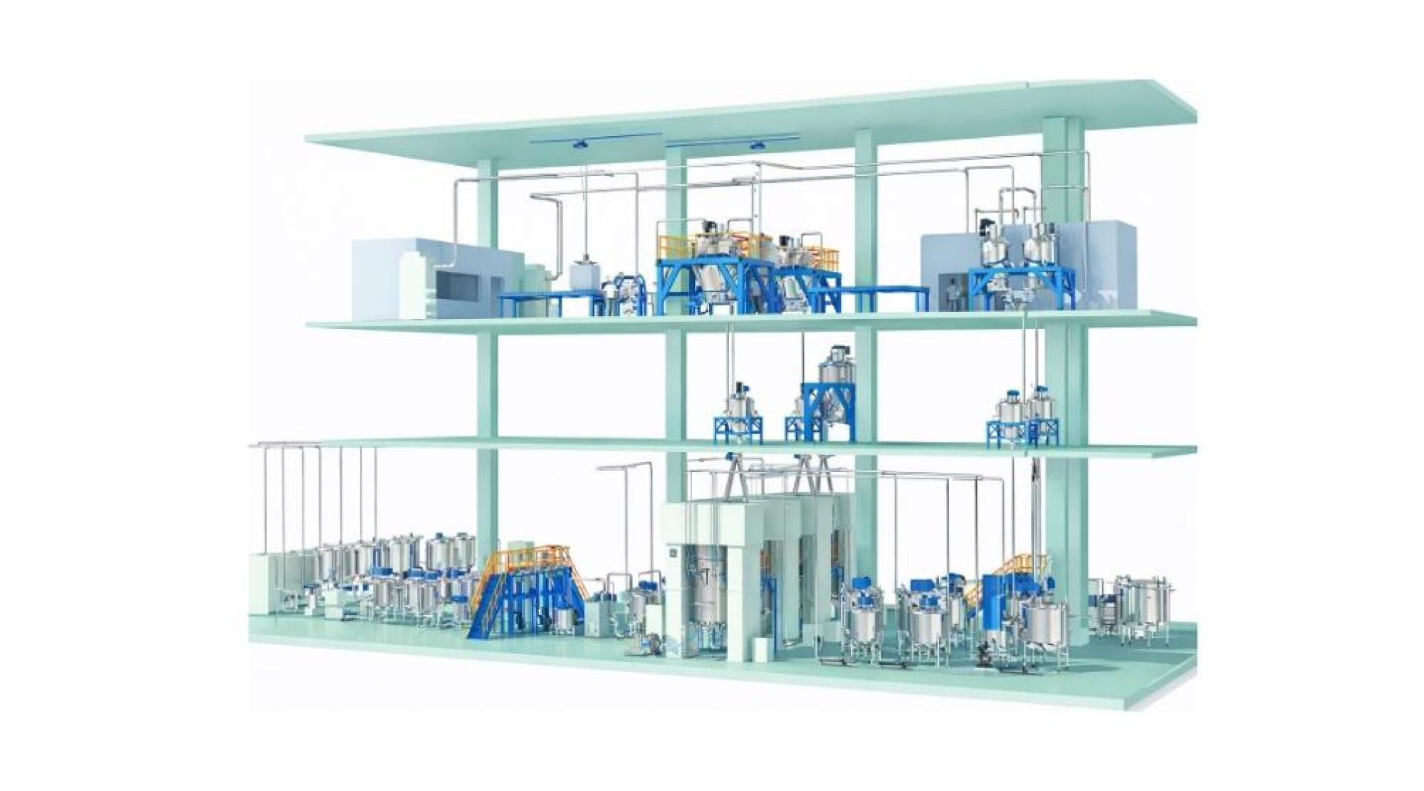 自動化生產系統 高能量密度電池 自動化生產系統 全方位驗證平台 乾法電極製程 客製化產品開發 自動化生產系統 鋰電池混料站採三層式結構,上層為原料投料、儲存與除塵系統,中層進行計量、輸送與暫存,下層配置混料機與出料設備,透過重力落料與垂直配置,減少輸送距離,提升效率、潔淨度與整體產線整合性。 粉體配送系統 提供拆包、儲存、計量至輸送的一站式粉體解決方案。整合真空與正壓輸送,並可依粉體物性進行模組化配置,有效降低粉塵外逸並提升製程穩定性。 液體配送系統 專為溶劑與液態添加劑設計,提供安全且高精度的輸送方案。系統整合多種泵浦、流量監測、過濾與除鐵單元,確保輸送過程的穩定性與潔淨度。 製漿系統 整合投料、混合與分散流程,支援從實驗到量產應用。可依配方需求配置雙行星攪拌、連續式製漿與高速分散設備,確保漿料均勻性與製程一致性。 粉塵管理系統 提供粉體製程的集塵與空間管理解決方案,透過集塵設備、局部吸塵與隔離設計,改善作業環境並符合環安法規。
